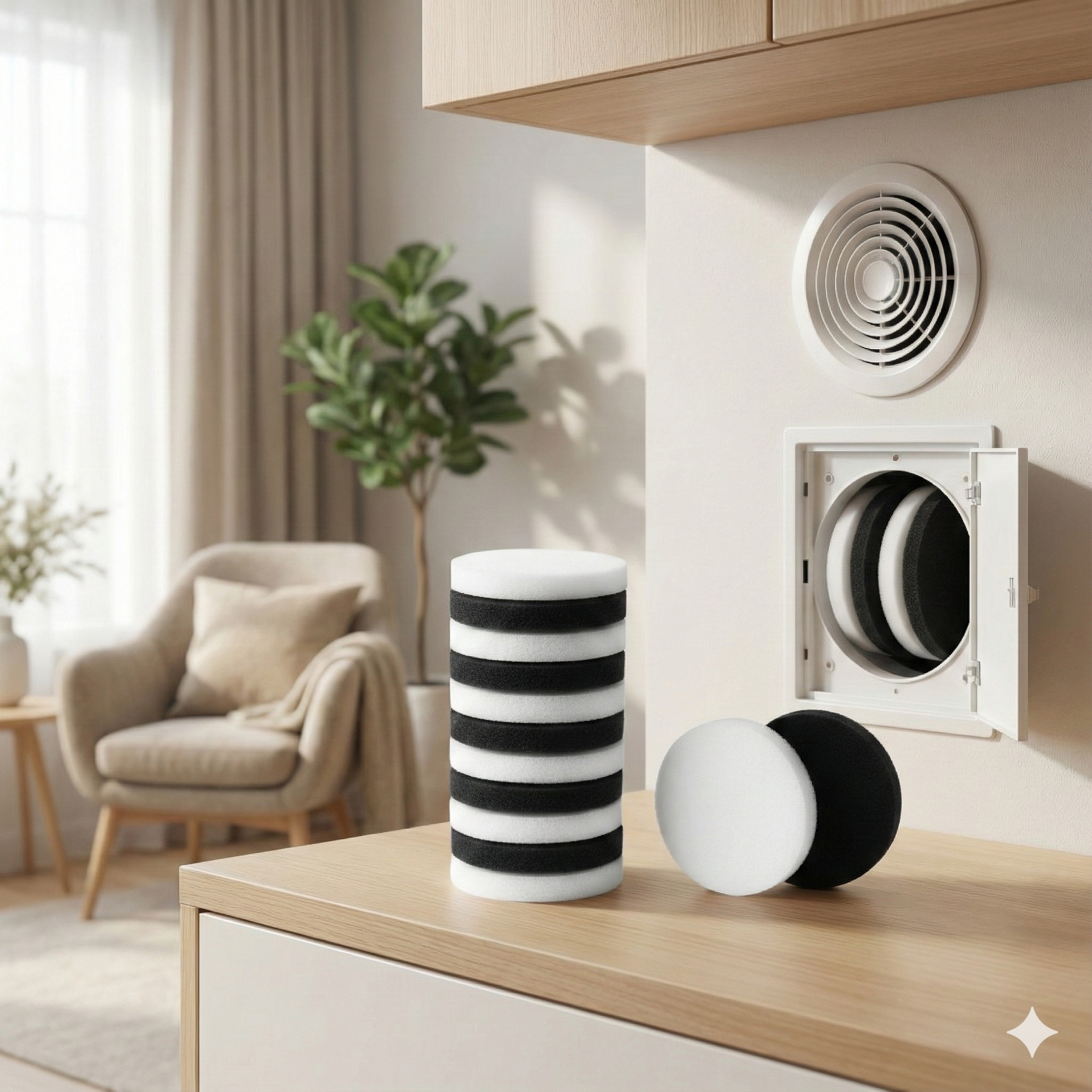 Das Aerex ALD Wandventil Fresh 80 Filterset G3 (10er Set) ist ein passgenaues Ersatzfilter-Set für Aerex Fresh 80 Außenluftdurchlässe und sorgt für eine zuverlässige Grobfilterung der einströmenden Frischluft. Die G3-Filterklasse entfernt effektiv Staub, Flusen, Insekten und andere grobe Partikel aus der Außenluft und trägt so zu einer sauberen und angenehmen Raumluft bei. Gleichzeitig schützt der Filter das Wandventil vor Verschmutzung und unterstützt einen gleichmäßigen Luftstrom. Die Filter lassen sich schnell und werkzeuglos austauschen und eignen sich ideal für den regelmäßigen Wartungsbedarf. Je nach Umgebung wird ein Filterwechsel etwa alle 3–6 Monate empfohlen. ✔ Ersatzfilter-Set für Aerex ALD Fresh 80 Wandventile ✔ Filterklasse G3 – zuverlässige Grobfilterung ✔ 10er Set – ideal für Vorrat & Mehrfachwechsel ✔ Filtert Staub, Flusen & grobe Partikel ✔ Schützt das Wandventil & unterstützt saubere Zuluft ✔ Passgenau & schneller, werkzeugloser Filterwechsel